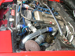 インタークーラーを大型化、配管他を修正して効率をよくし、パワー&レスポンスアップと軽量化を計りました。